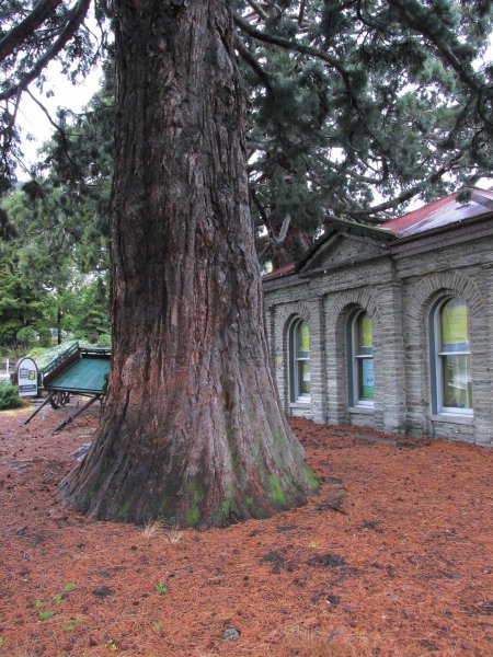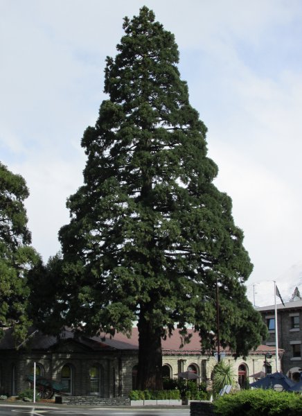 The second of two specimens known as the 'Trees of Justice' (see also OR/1166). They are said to have been planted outside the historic courthouse and library around 1876, by Phillip Boult, clerk to the Lake County Council. Boult had read of the American tradition of planting 'trees of justice' outside courthouses to provide shade for those attending court and thought it was a tradition worth emulating (Lovell-Smith, 2003). The trees make a striking statement as you enter the commercial centre of Queenstown (Cadwallader, 2013).