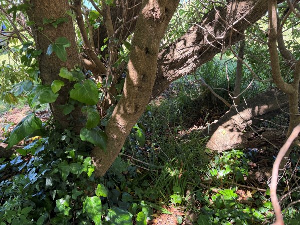 Possibly the oldest tree in Rapaki Bay. The tree appears to have split apart, both sides have failed and it have continued to grow. The tree could do with some care and attention to remove the ivy (Hammer, J.R., 2025).