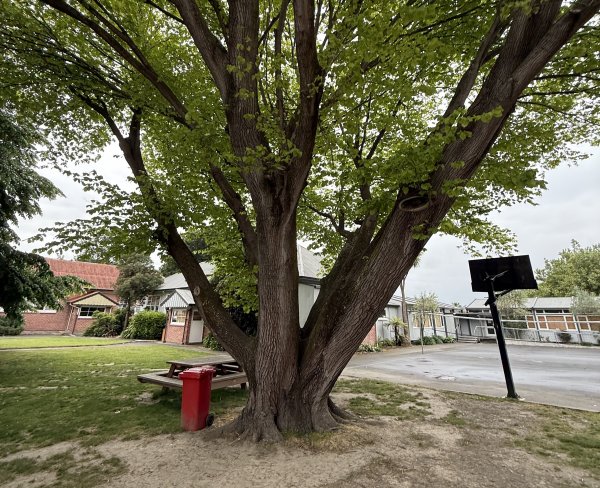 The link below goes into detail of the planting and tree history in the school. The last sentence mentions an elm in the quad, though it is unclear if it refers to this golden elm or the Horizontal elm (see record CR/2165).