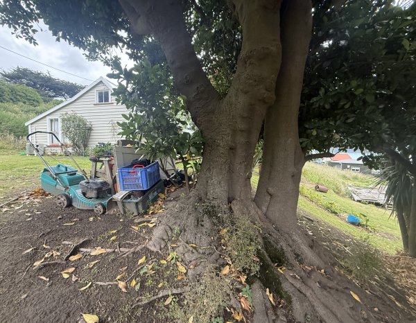 Two karaka trees are located directly behind Ōnuku Marae. They appear to have been planted in close proximity, and this entry records the slightly larger of the two specimens.
