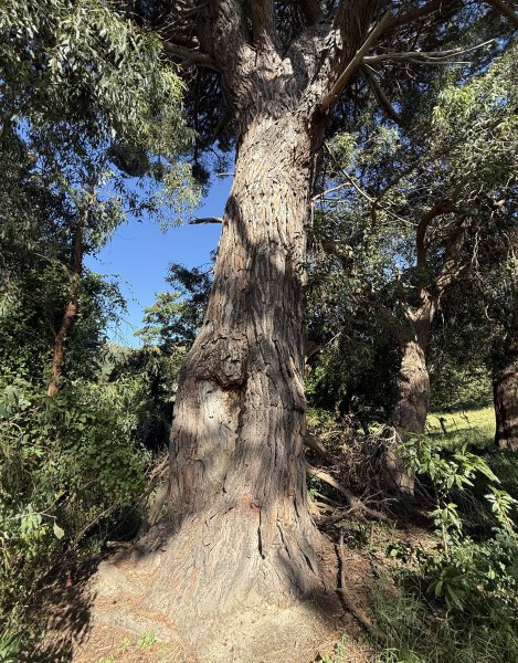 The tree is a prolific producer, with large numbers of cones and edible nuts present on the ground beneath the canopy. This strong fruiting habit indicates good vigour and adds to the tree’s ecological and heritage value. Both trees have similar large wounds at the base of the trunk. |