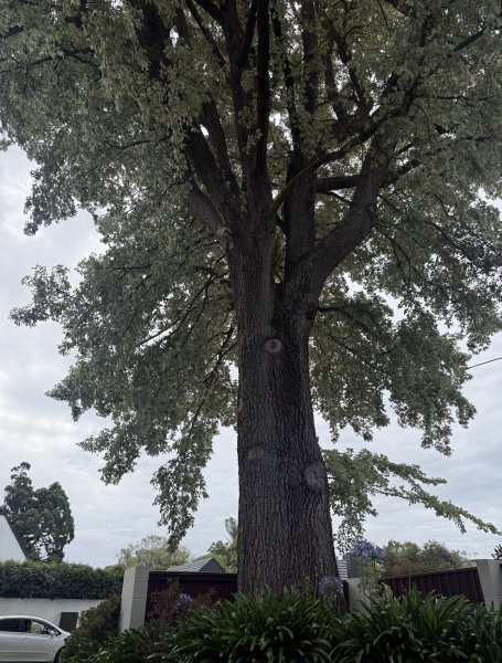 Based on its size, trunk development, and crown structure, the tree is estimated to be between 80 and 100 years old, suggesting it predates the current dwelling. The tree exhibits strong form and vigour for a variegated elm, with a broad, well-established crown and substantial trunk girth. Variegated elm cultivars are typically slower growing and less robust than green-leaved elms, making specimens of this scale uncommon. This tree is considered one of the largest variegated elms observed locally, and potentially within the wider Christchurch area (Hammer, J.R., 2026). Reference 1] Identification: Peter Bourne, Ulmus spp. specialist, Brighton UK pers.comm. email, 25.02.2026 |