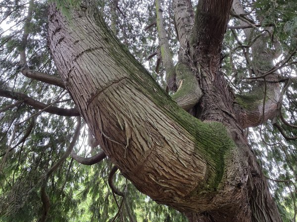 This tree is easily overlooked from the path, requiring visitors to step aside and move through its curtain of foliage to fully appreciate its scale and form. Growing in an open position, many of its lateral limbs have developed to substantial size and now compete with the main leader. (Cadwallader, B.G, 2026)